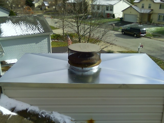 The chase pan we provide to replace the one that is rusting out are the heaviest metals in the industry. The pans are measured and all seams are welded not just caulked. The collars are incresed in height to 3 inches, replacing the 1 1/2 " collars on the old ones. The pans are broken to tapper off the water.